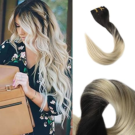 22 Inches Straight Full Head Ombre Dip Dyed Clip In Hair